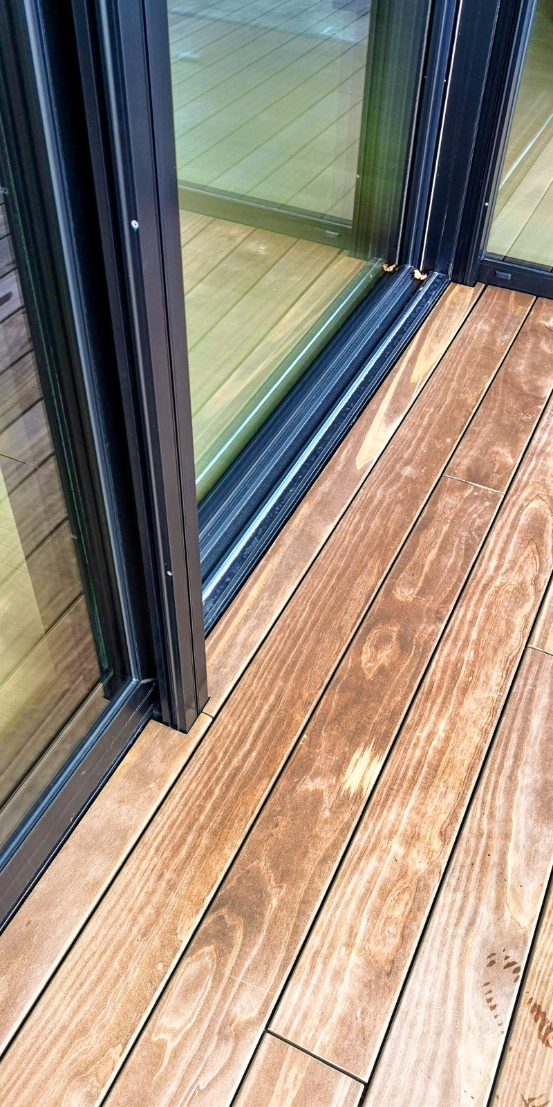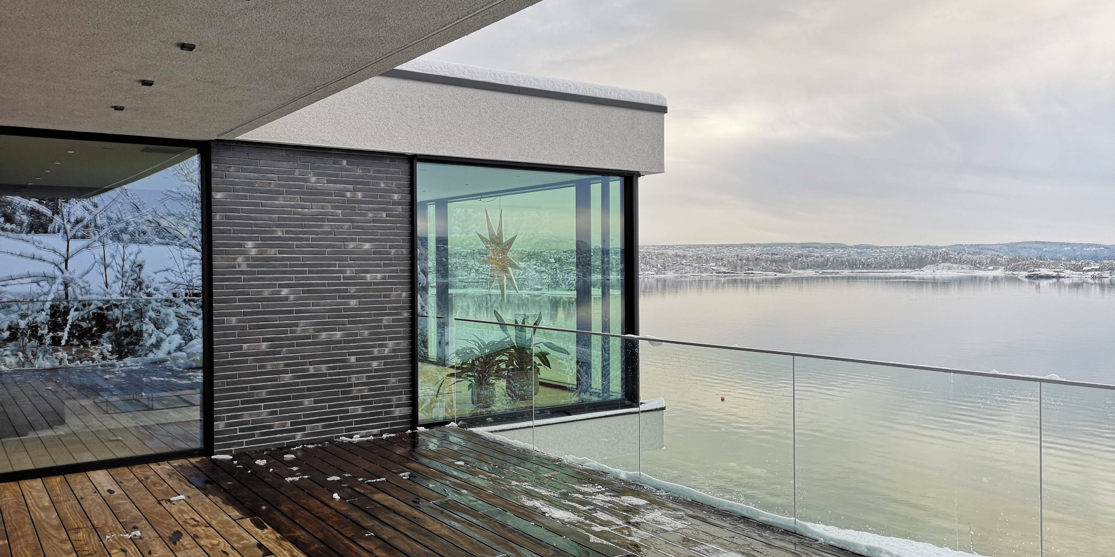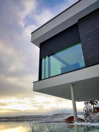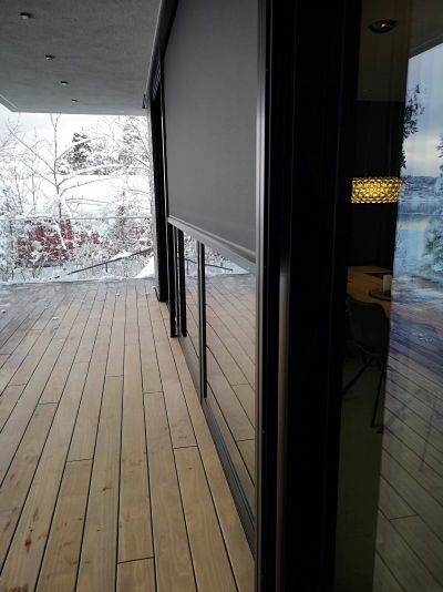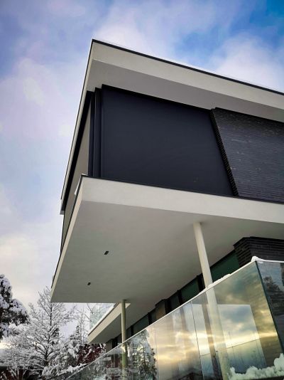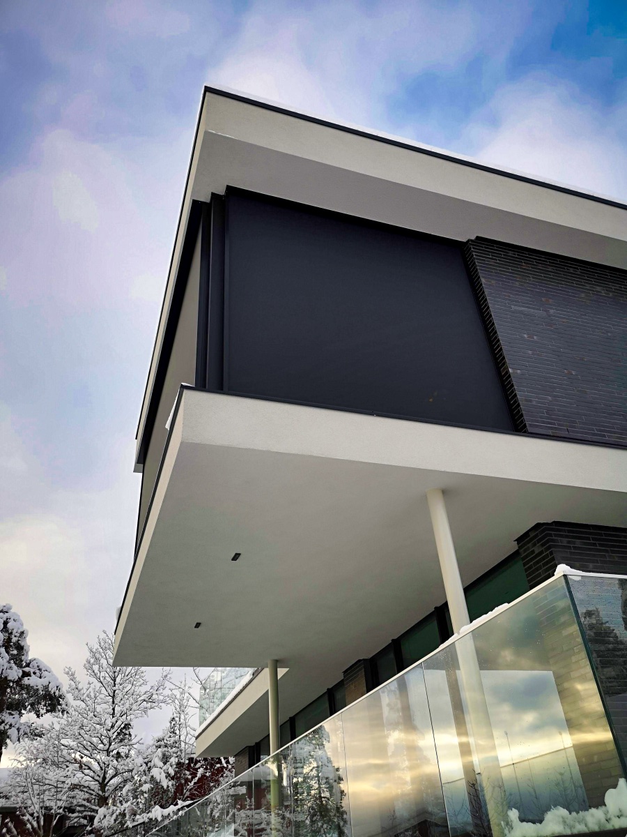 Renson Fixscreen IM7 i RAL9005 med Somfy IO motorer og Serge 600 Charcoal | Charcoal screenduk